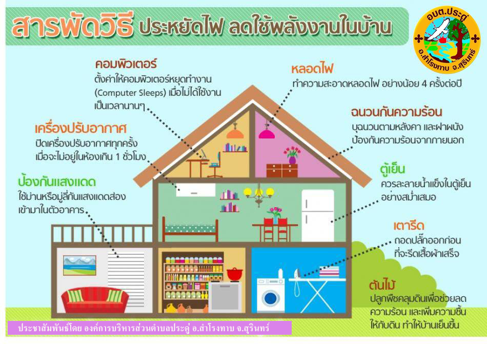 - ปิดสวิตซ์ไฟ และเครื่องใช้ไฟฟ้าทุกชนิดเมื่อเลิกใช้งาน ดับไฟทุกครั้งที่ออกจากห้อง