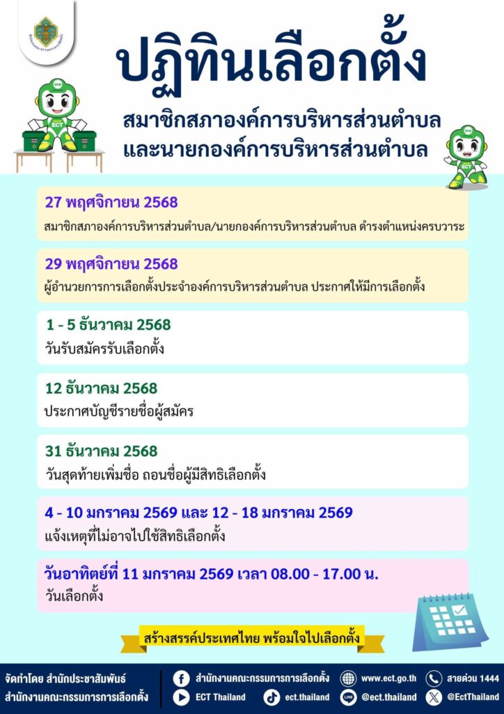 ปฏิทินเลือกตั้ง สมาชิกสภาองค์การบริหารส่วนตำบล และนายกองค์การบริหารส่วนตำบล – โดย สำนักประชาสัมพันธ์ สำนักงานคณะกรรมการการเลือกตั้ง