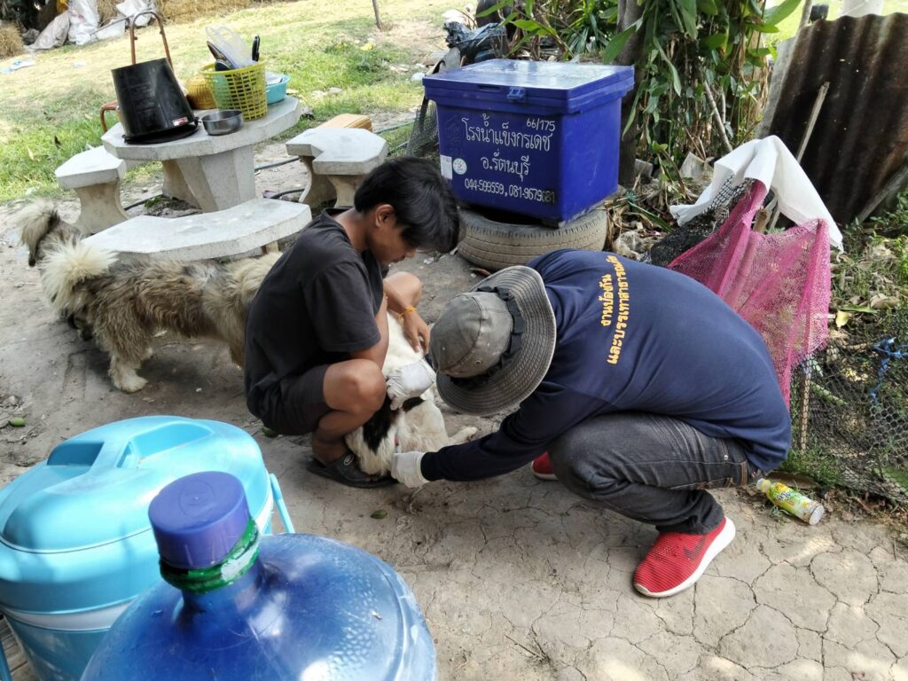นายณรงค์ศักดิ์ สมัญญา นายกองค์การบริหารส่วนตำบลประดู่ มอบหมายให้ทีมงานป้องกันและบรรเทาสาธารณภัยองค์การบริหารส่วนตำบลประดู่ ออกพื้นที่ ฉีดวัคซีนป้องโรคพิษสุนัขบ้าหมาและแมว